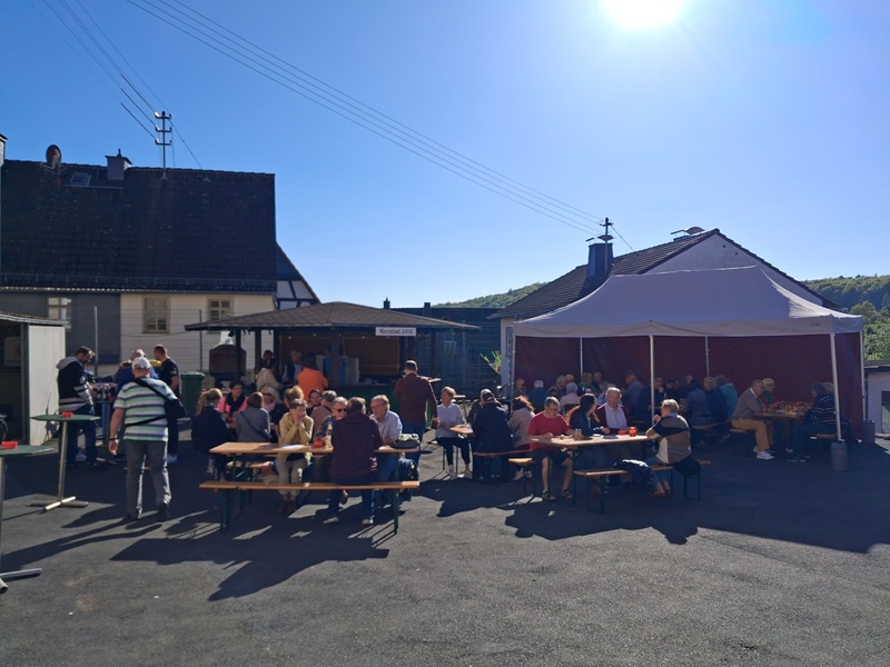 Nach getaner Arbeit durfte natürlich die wohlverdiente Geselligkeit nicht zu kurz kommen. Bei typisch hessischer Verpflegung mit herzhafter Fleischwurst und kühlem Apfelwein ließen wir den erfolgreichen Arbeitseinsatz in gemütlicher Runde gemeinsam ausklingen.