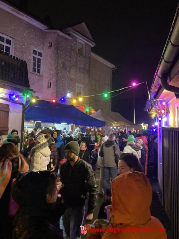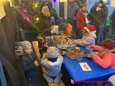 Die Erweiterung des Geländes auf Teile der Burgstraße (wo z.B. Adventsgestecke und Basteleien zu finden waren) und der erwartete Besucherandrang brachten natürlich alte und neue Herausforderungen mit sich. Zunächst einmal haben wir unser Versprechen gehalten: Letztes Jahr waren die leckeren Bratwürste und Kartoffel-Reibekuchen leider viel zu früh aus. Dieses Jahr haben wir massiv vorgesorgt – und es hat sich ausgezahlt! Alle Speisen waren bis zum Schluss reichlich vorhanden, sodass wirklich jeder satt und mit einem Lächeln nach Hause gehen konnte. Zudem haben wir unser Sicherheitskonzept geschärft: Die Erweiterung entlang der Burgstraße wurde mit Barrieren abgesichert. Ganz neu für alle Veranstaltungen auf dem Schulhof ist ein Notausgang, welcher ein Verlassen des Geländes gegenüber des Haupteinganges ermöglichen würde. Mehr Platz, mehr Sicherheit – das ist uns wichtig!